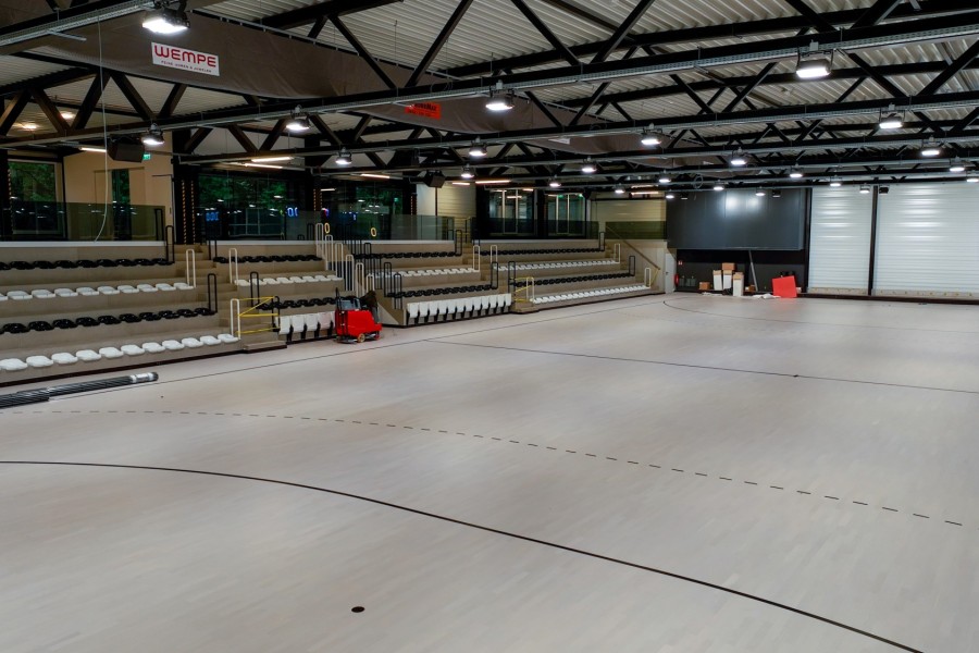 Beim Bau des Gebäudes mit der großen Spiel- und Trainingshalle spielten schließlich klimarelevante und ökologische Aspekte eine besondere Rolle. Vom energiesparenden LED-Flutlicht bis hin zur extensiven Begrünung des Hallendachs, der Regenwassernutzung zur Bewässerung der Außenanlagen, dem Strom aus Photovoltaik sowie Warmwasser aus Sonnenkollektoren wurde diese neue Anlage zu einem echten Leuchtturmprojekt gestaltet.