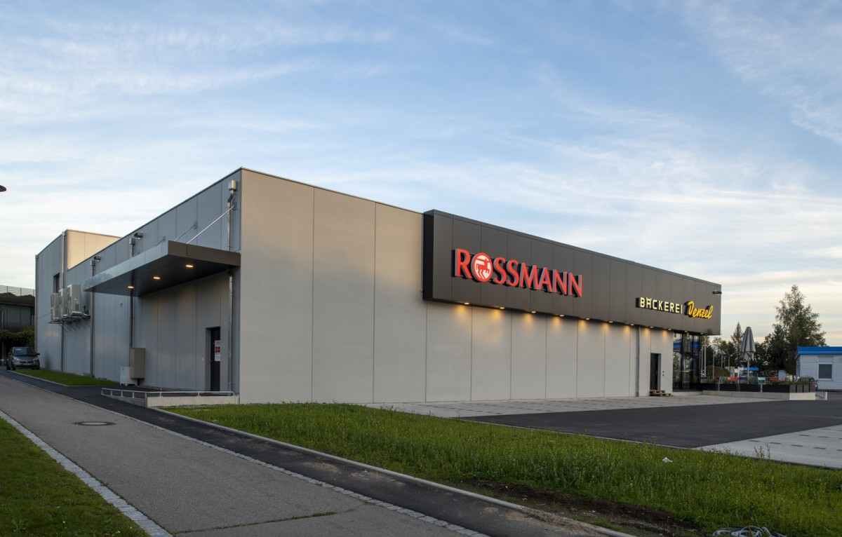 Wie man die Erstellung einer Bäckerfiliale mit einem Drogeriemarkt sinnvoll plant, haben Architekt Marius Mager vom Studio MM in Wangen, Klaus Denzel, Bäckermeister und Inhaber der Bäckerei Denzel in Vogt und der Betonfertigteilehersteller, die Hans Rinninger u. Sohn GmbH u. Co. KG aus Kißlegg im Allgäu gezeigt. Das Geschäftsgebäude mit einer Nutzfläche von 1150 m² im Gewerbegebiet von Vogt beherbergt eine Filiale der Bäckerei Denzel und eine Filiale des Drogeriemarkts Rossmann. Eine mögliche Umnutzung sollte von vornherein berücksichtigt und geplant werden. So entstand die Idee, Beton mit Holz zu kombinieren.