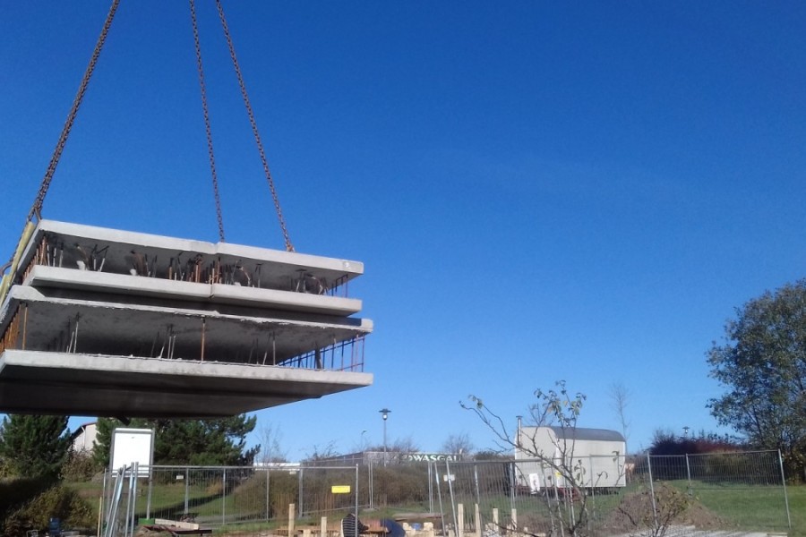 Auf einer Fläche von knapp fünf mal sieben Metern dient der eingeschossige Pavillion als Begegnungsstätte und Veranstaltungsort. Im Rahmen des europäischen Forschugnsprojektes SeRaMCo wurden Fertigelemente aus Beton RC 25/30 mit R-Zement und 10% Brechsand plus 35% recycelte Gesteinskörnung verwendet. Komplettiert wurde das Vorhaben mittels Ortbeton C25/30 mit Gesteinskörnungskategorie Typ 1 (max. 35 Vol-% Anteil RC-Gesteinskörnung) nach DAfStb-Richtlinie.