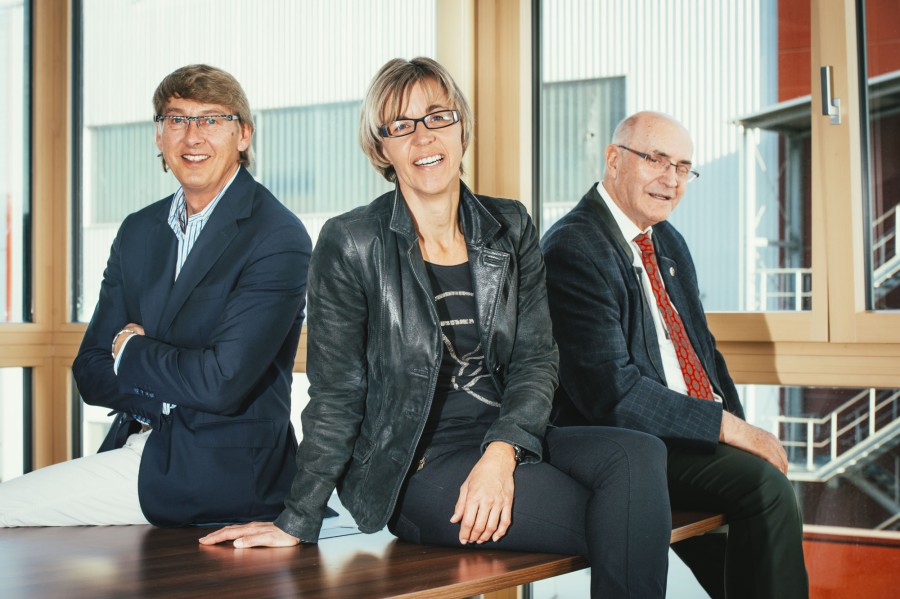 Elsäßer Geschäftsleitung: Jürgen Heitz und Marlies Elsäßer-Heitz mit Firmengründer Egon Elsäßer
