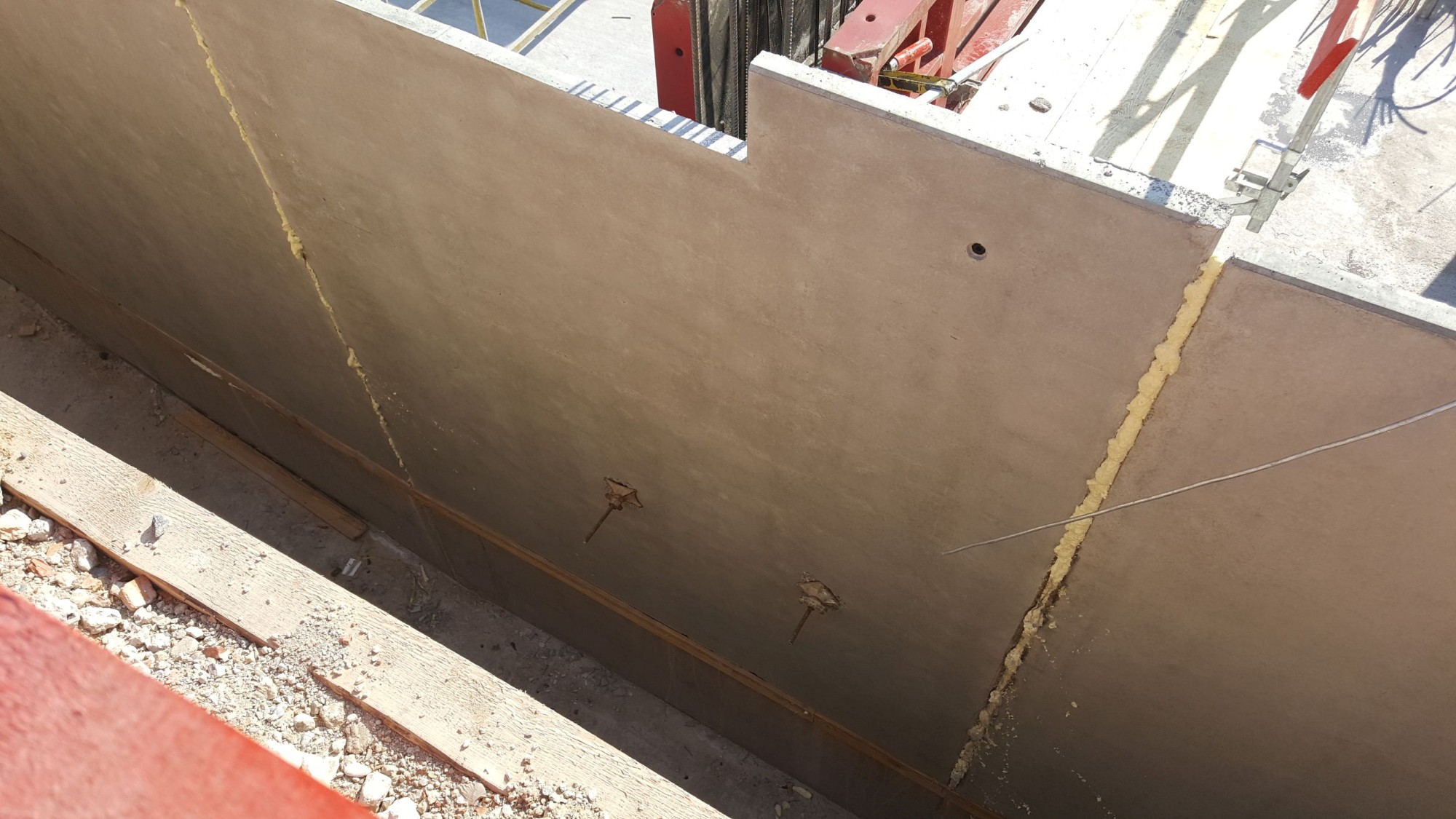 Die Bauausführung erfolgte in Betonfertigteilbauweise. Die Bauherrin hatte damit bereits gute Erfahrungen gemacht. Ausschlaggebend war die damit erzielbare Zeitersparnis auf der Baustelle. Die hohe Masse der Bauteile gewährt einen guten Schallschutz. Mit der Herstellung und Lieferung der Elemente beauftragte der Rohbauer die Egon Elsäßer Bauindustrie GmbH Co. KG. Das Unternehmen lieferte insgesamt 7.926 Quadratmeter Doppelwände und 7.056 Quadratmeter Elementdecken. Die Wölbung der Außenwände mit geraden Elementen darzustellen, bildete eine besondere Herausforderung in der Planung. Die elliptische Form des Baukörpers und die trapezförmigen Wohnungsgrundrisse erforderten Deckenelemente mit großen Spannweiten zwischen sieben und acht Metern. Um den Aufwand auf der Baustelle zu reduzieren, wurden Wand- und Deckenelemente passgenau aufeinander abgestimmt.