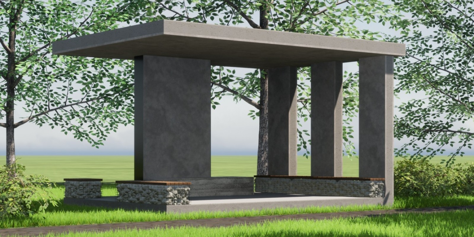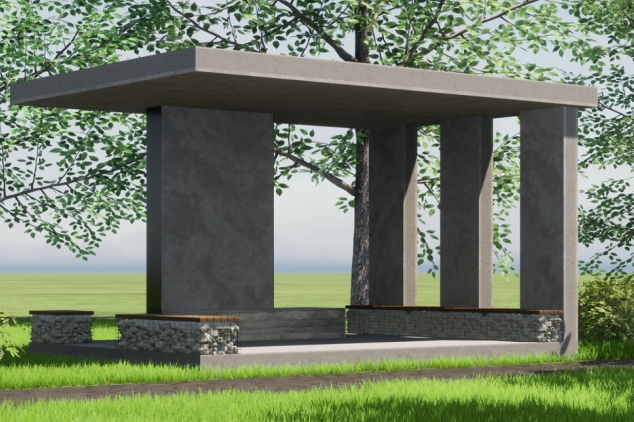 Auf einer Fläche von knapp fünf mal sieben Metern dient der eingeschossige Pavillion als Begegnungsstätte und Veranstaltungsort. Im Rahmen des europäischen Forschugnsprojektes SeRaMCo wurden Fertigelemente aus Beton RC 25/30 mit R-Zement und 10% Brechsand plus 35% recycelte Gesteinskörnung verwendet. Komplettiert wurde das Vorhaben mittels Ortbeton C25/30 mit Gesteinskörnungskategorie Typ 1 (max. 35 Vol-% Anteil RC-Gesteinskörnung) nach DAfStb-Richtlinie.