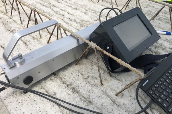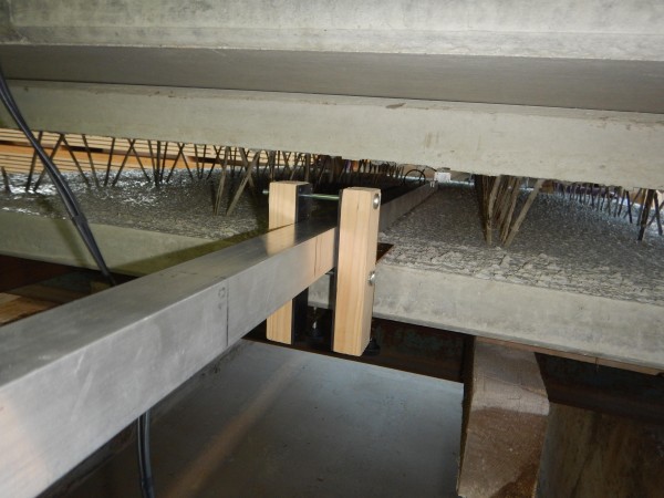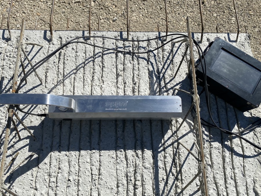 Die Forderung der WU-Richtlinie nach einer vollflächig kornrauen Oberfläche gilt natürlich auch für den Bereich unter den Gitterträgern. Damit soll vermieden werden, dass dort unbehandelte glatte Flächen verbleiben. Allerdings sind die Flächen unter den Gitterträgern für das manuelle Aufrauen nur schwer erreichbar, sodass die Umsetzung dieser Forderung bisher aufwendig war. Auch die Prüfung dieser schwer zugänglichen Bereiche war bislang schwierig. Deshalb beschränkte man sich in den Fertigteilwerken oder auf der Baustelle meist auf visuelle Kontrollen und den Vergleich mit Referenzflächen. Mit dem neuen SL‐Laser‐Profilometer jedoch kann mithilfe eines schräg gestellten, dicht neben den Gitterstäben geführten Lasers das Oberflächenprofil auch unter den Gitterträgern abgetastet werden.